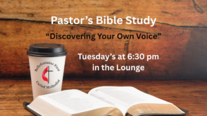 Pastor’s Bible Study All are invited to join the Pastor’s Bible Study! Tuesdays at 6:30 pm in the Fellowship Hall. Search for: Recent Comments
