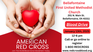 The Red Cross will be on Jan. 13th, 2025 from 12-6pm in the Fellowship Hall for our monthly blood drive. If you would like to register to donate, please call 1-800-RED-CROSS or you can go online to redcrossblood.org.