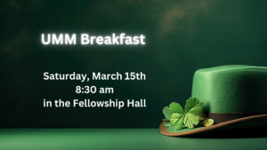 The United Methodist Men are holding their monthly breakfast on Saturday, March 15th, at 8:30 am in the Fellowship Hall. All men are invited to join the food, fun, and fellowship!